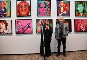 Церемония открытия мультижанровой выставки художника, музыканта и продюсера, лидера группы "Цветы" Стаса Намина в Московском музее современного искусства (MMOMA). Музыкант, продюсер Стаса Намина (справа) и первый заместитель директора Московского музея современного искусства Манана Попова (слева) на церемонии.