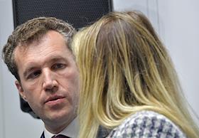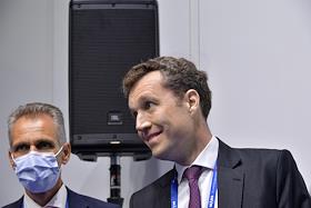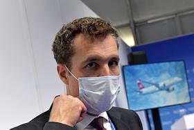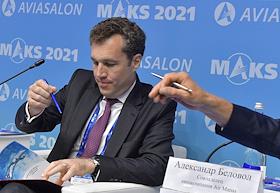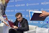 Международный авиационно-космический салон МАКС-2021 на аэродроме в Жуковском. Глава Airbus в России Жюльен Франьятт во время церемонии подписания договора с авиакомпанией Air Manas на оказание услуг по пулингу и ремонту компонентов для самолетов A220 в рамках авиасалона.