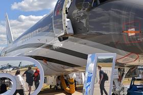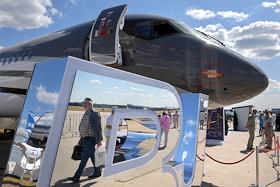 Международный авиационно-космический салон МАКС-2021 на аэродроме в Жуковском. Самолет Sukhoi Business Jet.