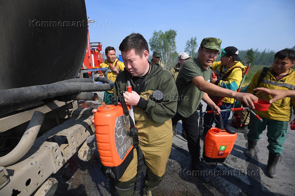 Лесные пожары в Якутии. Участники общественного добровольческого штаба по борьбе с лесными пожарами во время сборов.
