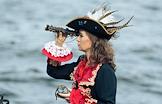 Генеральная репетиция военно-морского парада в честь Дня Военно-морского Флота (ВМФ) России в акватории реки Невы. Сотрудник противопожарной службы снимает на телефон пролет военной авиации над Невой. Истребители МиГ-9.