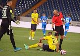 Тинькофф РПЛ, сезон 2021/22. Первый тур. Футбольный матч между командами "Динамо" (Москва) и "Ростов" (Ростов-на-Дону), на стадионе Ростов-Арена. Слева направо: вратарь команды "Ростов" Сергей Песьяков, игрок команды "Ростов" Николай Комличенко и главный судья Владимир Москалёв во время матча.