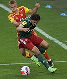 Российская Премьер-Лига (РПЛ). Тинькофф - Чемпионат России по футболу 2021/2022. 1-й тур. Матч между командами "Локомотив" (Москва) — "Арсенал" (Тула) на стадионе "РЖД Арена". Игрок команды "Локомотив" Мацей Рыбус (слева) и игрок команды "Арсенал" Георгий Костадинов (справа) во время матча.