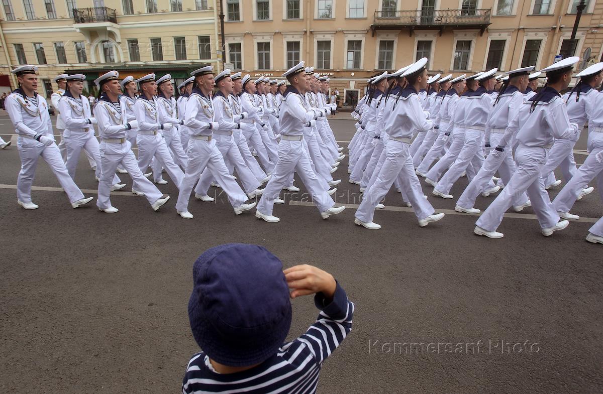 День Военно-морского флота (ВМФ) России. Жанровая фотография. Праздничные гуляния в центре города.
