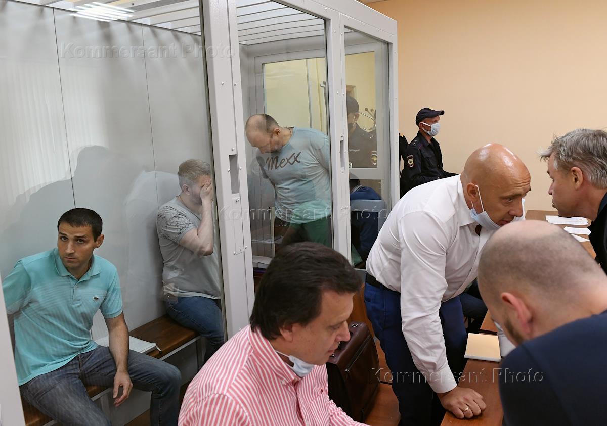 Заседание по делу бывшего начальника отдела технического обеспечения продовольственного управления Министерства обороны России Александра Вакулина, бывшего начальника отдела департамента по обеспечению государственного оборонного заказа Министерства обороны России Алексея Гринюка, бывшего начальника продовольственного управления Министерства обороны России Александра Бережного и бывшего начальника отдела проведения конкурентных процедур по государственному заказу департамента государственных закупок Министерства обороны России Юрия Решетникова, обвиняемых во взятке в 386 миллионов рублей, в 235-й Гарнизонном военном суде.