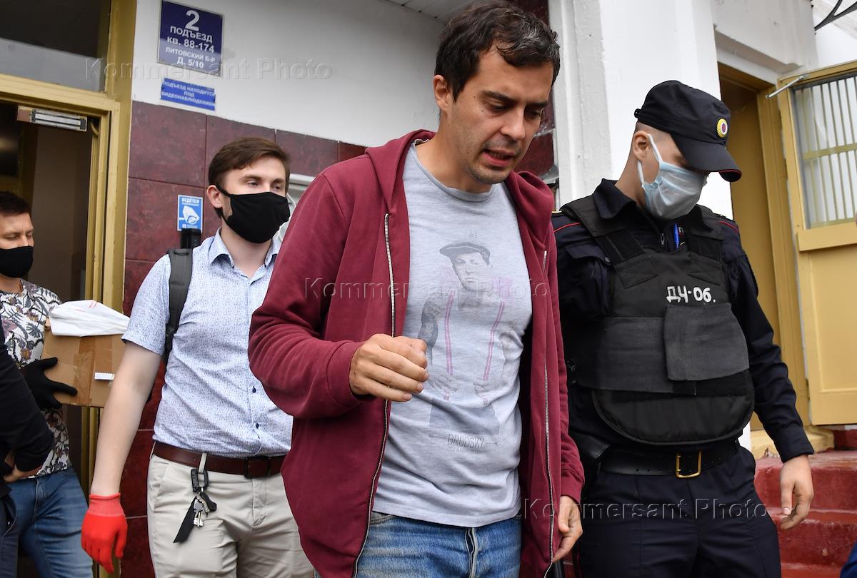 The situation at the house of the editor-in-chief of The Insider (recognized by the Russian Ministry of Justice as a foreign media agent) Roman Dobrokhotov, whose apartment is being searched in the case of libel against the Dutch journalist Max van der Werff. The editor-in-chief of The Insider (recognized by the Russian Ministry of Justice as a foreign media agent) Roman Dobrokhotov (center) after a search.