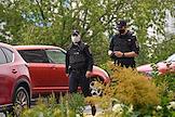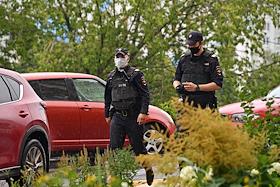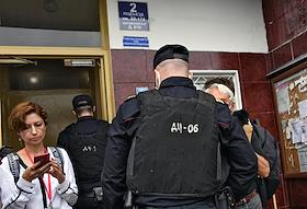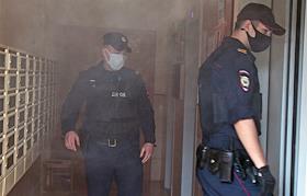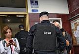 The situation at the house of the editor-in-chief of The Insider (recognized by the Russian Ministry of Justice as a foreign media agent) Roman Dobrokhotov, whose apartment is being searched in the case of libel against the Dutch journalist Max van der Werff. Police officer at the entrance of the house. Police officers at the entrance of the house before the search.