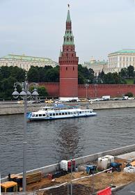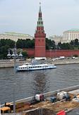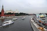 Виды Москвы. Жанровая фотография. Прогулочные теплоходы на Москве реке на фоне Кремля.