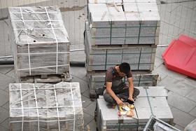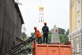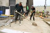 Жанровая фотография. Рабочие во время строительных работ по благоустройству острова Балчуг в рамках программы преображения столичных набережных.