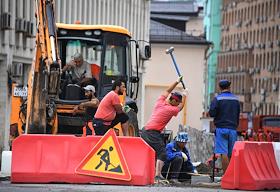 Жанровая фотография. Строительные работы по благоустройству острова Балчуг в рамках программы преображения столичных набережных.
