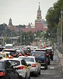 Виды Москвы. Жанровая фотография. Автомобили на дороге на фоне Кремля.