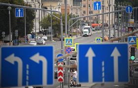 Виды Москвы. Жанровая фотография. Автомобильное движение. Дорожные знаки.
