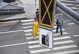 Виды Москвы. Жанровая фотография. Пешеходы переходят улицу по пешеходному переходу.
