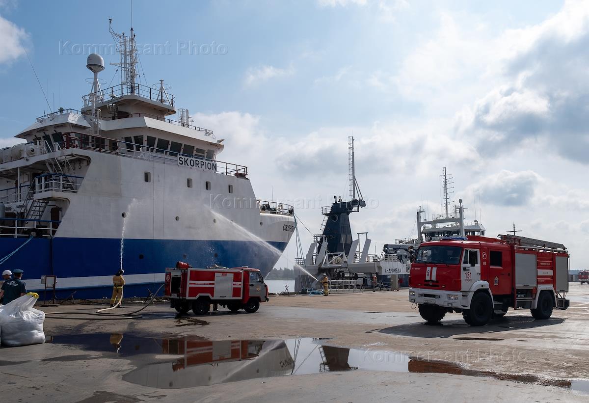 Учения областных пожарных на судне «Скорпион» 29 июля в 10.00 в Кировском районе на судостроительном заводе «Пелла».