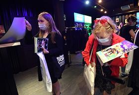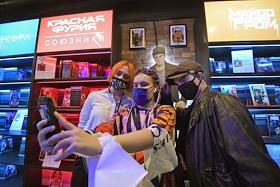 Церемония открытия официального магазина издательства комиксов BUBBLE в пространстве дизайн-завода "Флакон". Жанровая фотография. Посетители магазина.