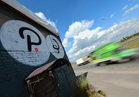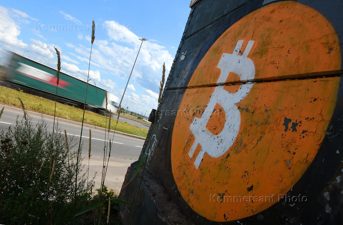 Жанровая фотография. Граффити Биткоин на стене у дороги.