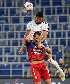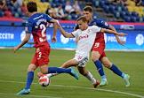 Российская Премьер-Лига (РПЛ). Тинькофф - Чемпионат России по футболу 2021/2022. 1-й тур. Матч между командами ЦСКА (Москва) — "Локомотив" (Москва) на стадионе "ВЭБ Арена". Игрок команды ЦСКА Антон Заболотный (слева) во время матча.