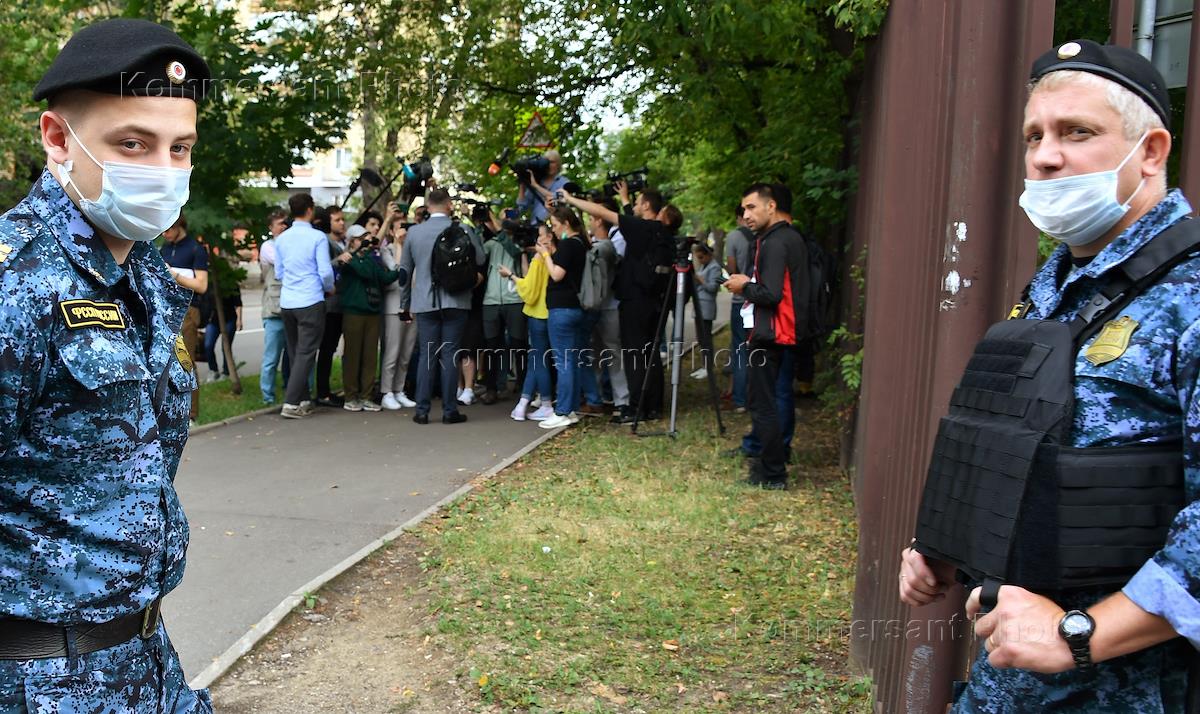 Оглашение приговора бывшему юристу Фонда борьбы с коррупцией (ФБК) (ликвидированный иноагент, организация признана экстремистской, ее деятельность запрещена) Любови Соболь, обвиняемой в подстрекательстве к нарушению санитарных норм на акции 23 января 2021 года в Москве, в Преображенском районном суде. Ситуация у суда. Сотрудники полиции у здания суда.