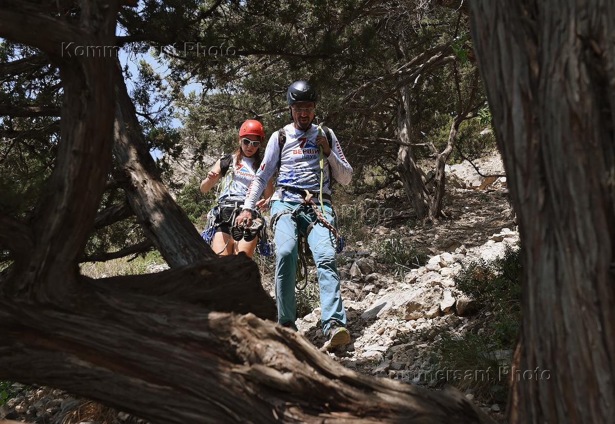 Альпинист Александр Абрамов (справа) на тренировке в своей "Горной школе в Крыму" на горе Кошка.