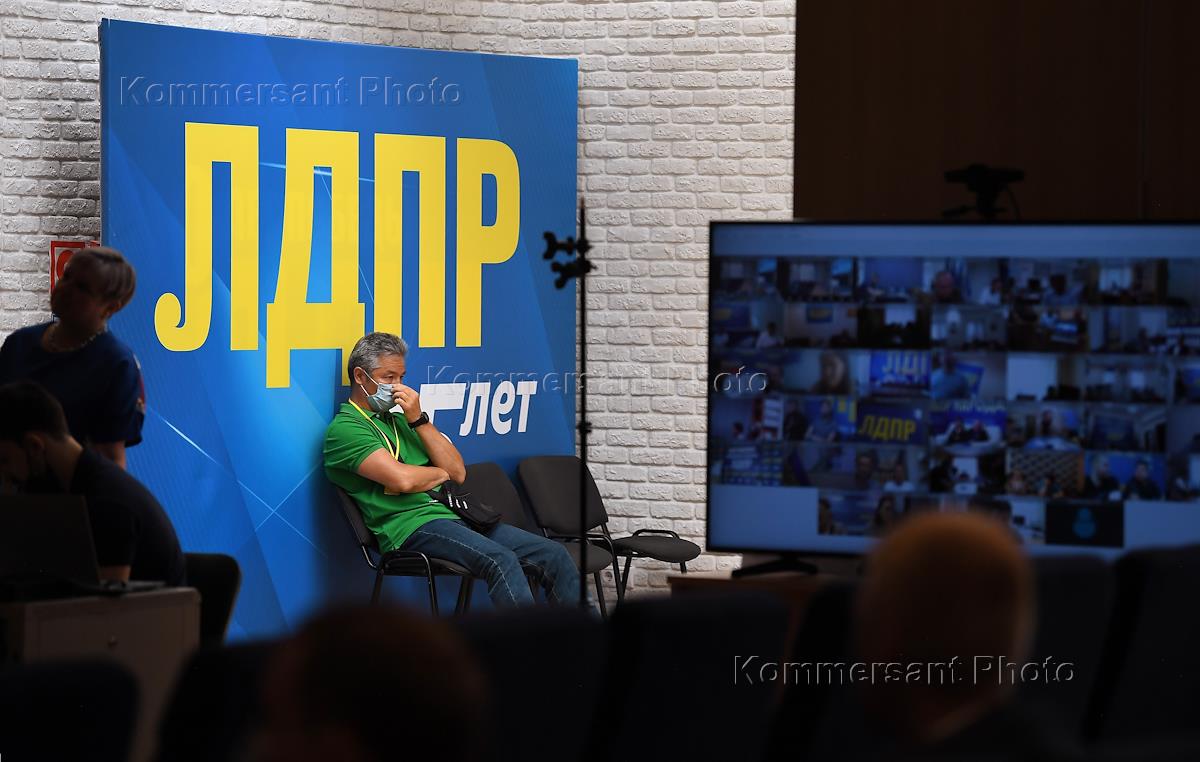 Встреча руководства Либерально-демократической партии России (ЛДПР) во главе с лидером ЛДПР Владимиром Жириновским с кандидатами от партии на выборах депутатов Государственной думы России в регионах в Институте мировых цивилизаций.