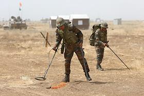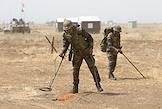 XII совместные российско-индийские учения ИНДРА-2021 на военном полигоне Прудбой. Индийские саперы во время разминирования территории.