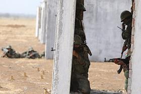 XII совместные российско-индийские учения ИНДРА-2021 на военном полигоне Прудбой. Индийские военные во время стрельбы на полигоне.