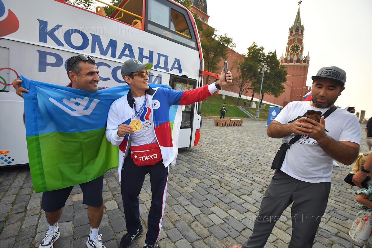 Церемония встречи российских спортсменов, выступавших на XXXII летних Олимпийских играх в Токио, на Красной площади.