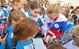 Церемония встречи российских спортсменов, выступавших на XXXII летних Олимпийских играх в Токио, на Красной площади. Российская гандболистка Полина Ведехина (в центре) во время встречи.