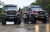 Последствие наводнения в городе. Жанровая фотография. Автомобили Росгвардии.