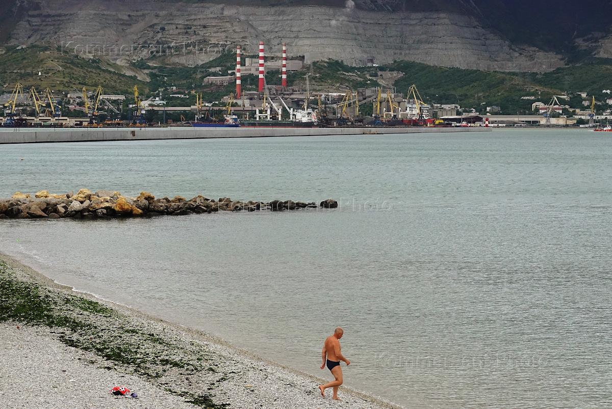 Виды Новороссийска после объявления штормового предупреждения. Жанровая фотография. Мужчина на пустом пляже.