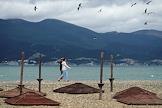 Виды Новороссийска после объявления штормового предупреждения. Жанровая фотография. Разобранные пляжные зонты-тенты.