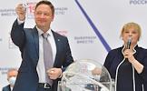Жеребьевка в Центральной избирательной комиссии (ЦИК) России по определению мест партий в избирательном бюллетене на выборах депутатов Государственной думы России 19 сентября 2021 года. Кандидат от "Партии роста" Сергей Капчук (справа) во время жеребьевки.