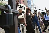 Рассмотрение дела пресс-секретаря Алексея Навального Киры Ярмыш, которая обвиняется в подстрекательстве к нарушению санитарных норм в ходе несанкционированной акции в центре Москвы в январе, в Преображенском районном суде. Пресс-секретарь Алексея Навального Кира Ярмыш (в центре) после окончания заседания суда.