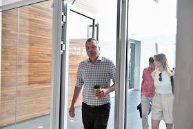 Встреча представителей Общественного штаба по наблюдению за выборами в столице и разработчиков системы дистанционного электронного голосования (ДЭГ) с кандидатами в депутаты Государственной Думы VIII созыва в Деловом квартале "Красная Роза". Телеведущий Евгений Попов (слева) перед началом встречи.