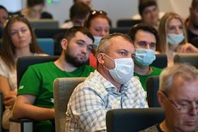 Встреча представителей Общественного штаба по наблюдению за выборами в столице и разработчиков системы дистанционного электронного голосования (ДЭГ) с кандидатами в депутаты Государственной Думы VIII созыва в Деловом квартале "Красная Роза". Участники во время встречи.