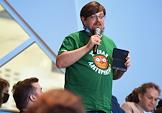 Встреча представителей Общественного штаба по наблюдению за выборами в столице и разработчиков системы дистанционного электронного голосования (ДЭГ) с кандидатами в депутаты Государственной Думы VIII созыва в Деловом квартале "Красная Роза". Главный редактор радиостанции "Эхо Москвы" Алексей Венедиктов во время встречи.