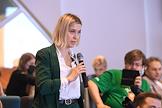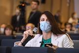 Встреча представителей Общественного штаба по наблюдению за выборами в столице и разработчиков системы дистанционного электронного голосования (ДЭГ) с кандидатами в депутаты Государственной Думы VIII созыва в Деловом квартале "Красная Роза". Кандидат в депутаты от "Партии Роста" Эльвира Вихарева.