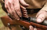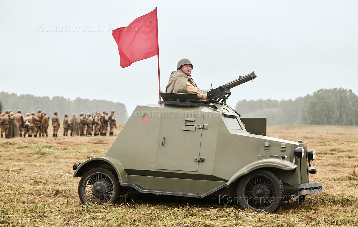 IX Военно–исторический фестиваль "Сибирский огонь" в поселке Малиновка. Участник фестиваля в костюме бойца Красной армии.