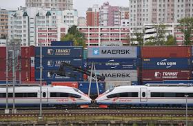 Терминально-логистический центр (ТЛЦ) "Ховрино" на станции Ховрино Октябрьской магистрали. Контейнерный терминал. Жанровая фотография.