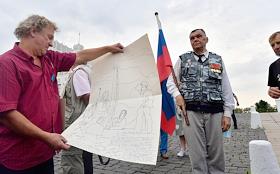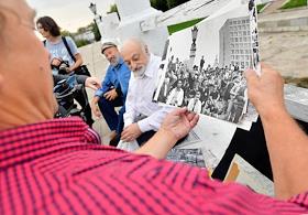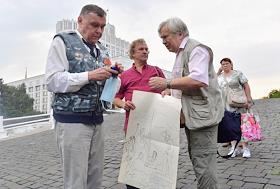 An informal meeting of the defenders of the barricades during the GKChP coup on August 19-21, 1991 took place on Gorbaty Bridge. Participants during the meeting.