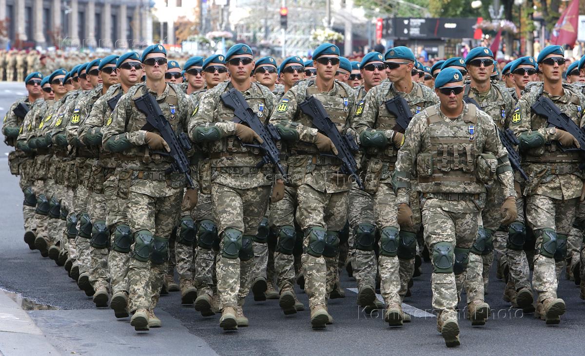 Первая репетиция парада войск, посвященного 30-ой годовщине Независимости Украины, прошлана Крещатике и площади Майдан Незалежности. Военнослужащие во время репетиции парада.