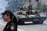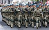 Первая репетиция парада войск, посвященного 30-ой годовщине Независимости Украины, прошлана Крещатике и площади Майдан Незалежности. Жанровая фотография.