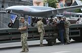 Первая репетиция парада войск к 30-ой годовщине Независимости Украины на Крещатикe и площади Майдан Незалежности. Беспилотник Bayraktar TB-2 и военнослужащие перед началом репетиции.