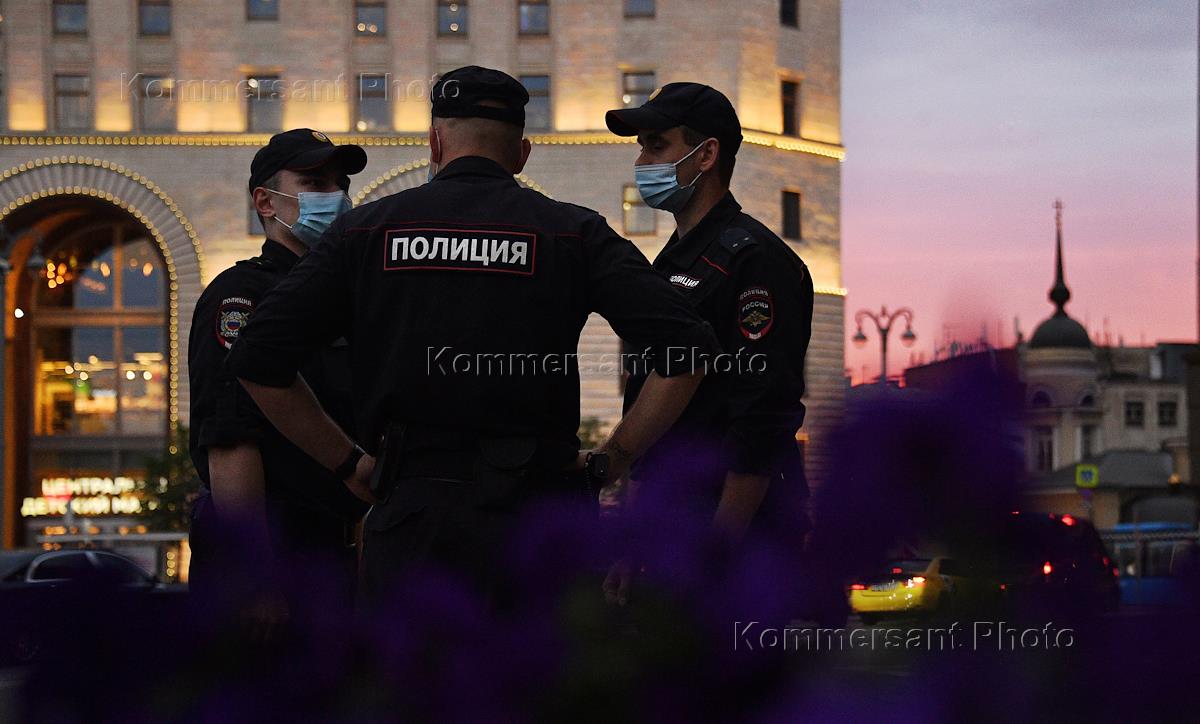 Одиночные пикеты у здания ФСБ на Лубянке в поддержку журналистов и СМИ, признанных иностранными агентами. Сотрудники полиции у здания ФСБ.