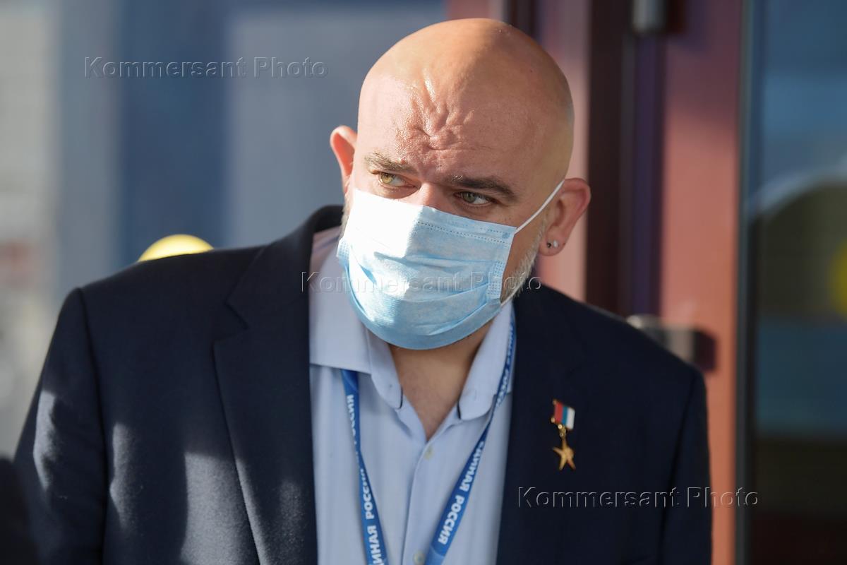 Второй этап XX съезда Всероссийской политической партии "Единая Россия" в Центральном выстовачном комплексе "Экспоцентр". Главный врач Московской городской клинической больницы № 40 "Коммунарка" Денис Проценко перед началом заседания съезда.