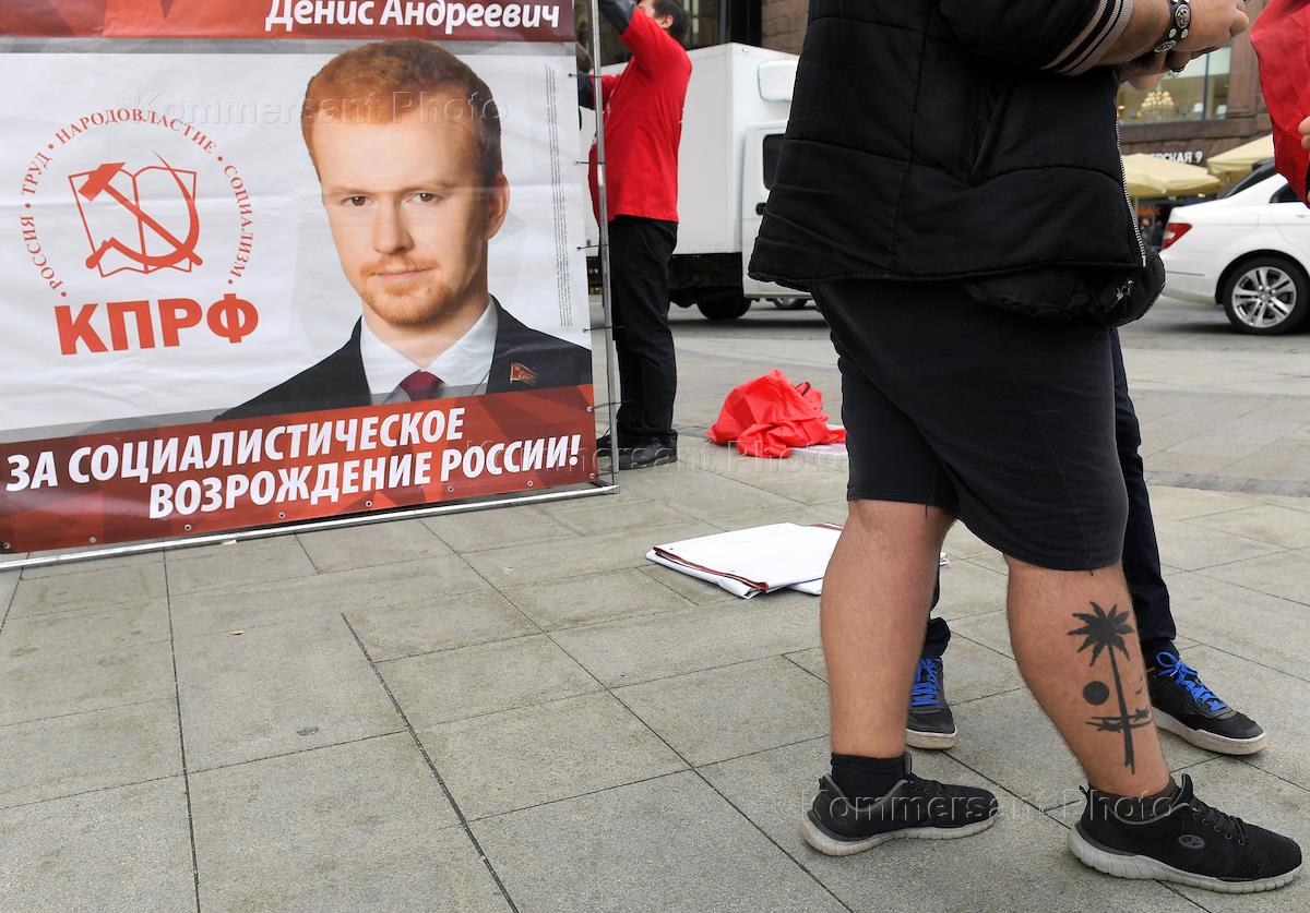 Презентация избирательного объединения КПРФ, кубов кандидатов в депутаты Государственной думы (ГД) России, программных материалов в рамках запланированной акции "Красные в городе" у здания мэрии Москвы.