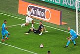 Российская Премьер-Лига (РПЛ). Тинькофф - Чемпионат России по футболу 2021/2022. 6-й тур. Матч между командами ЦСКА (Москва) - "Зенит" (Санкт-Петербург) стадионе "Газпром Арена". Вратарь команды ЦСКА Игорь Акинфеев (слева) и игрок команды "Зенит" Сердар Азмун (справа) во время матча.