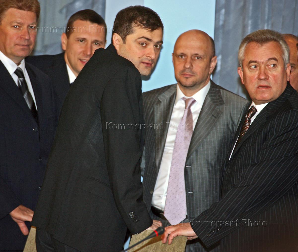 Заместитель руководителя администрации Президента России Владислав Сурков (в центре) перед встречей Президента России Владимира Путина с депутатами фракции "Единая Россия" Государственной Думы России. Встреча прошла в подмосковном пансионате "Лесные дали".