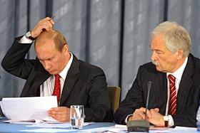 Президент России Владимир Путин (слева) и председатель Государственной Думы России Борис Грызлов (справа) на встрече Президента с депутатами фракции "Единая Россия" Государственной Думы России, Встреча прошла в подмосковном пансионате "Лесные дали".