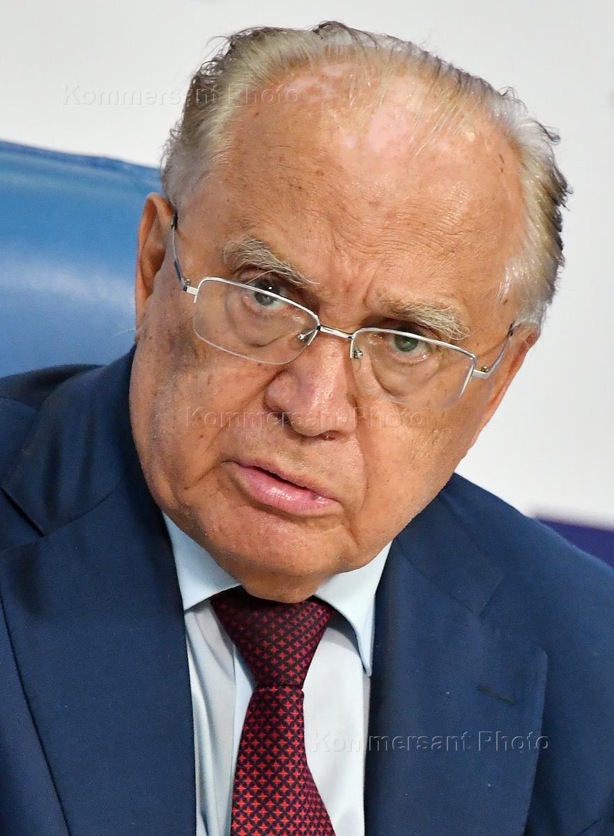 Пресс-конференция на тему "Инициативы КПРФ в сфере образования как важнейшая часть программы развития страны", посвященная предвыборной программе КПРФ и предложениям партии по изменению системы образования в России, в информационном агентстве ТАСС. Ректор Московского государственного университета (МГУ) имени М.В.Ломоносова Виктор Садовничий во время пресс-конференции.